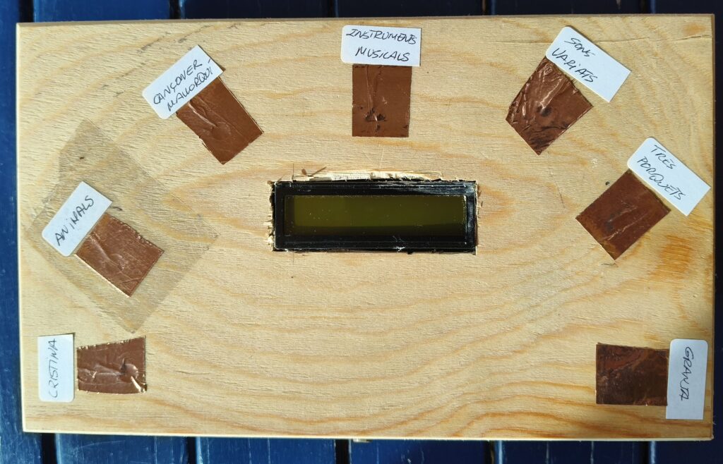 Hi ha un array amb el nom de totes les cançons i un amb el nom dels grups de sons, aquesta informació apareix al serial print i a l’LCD